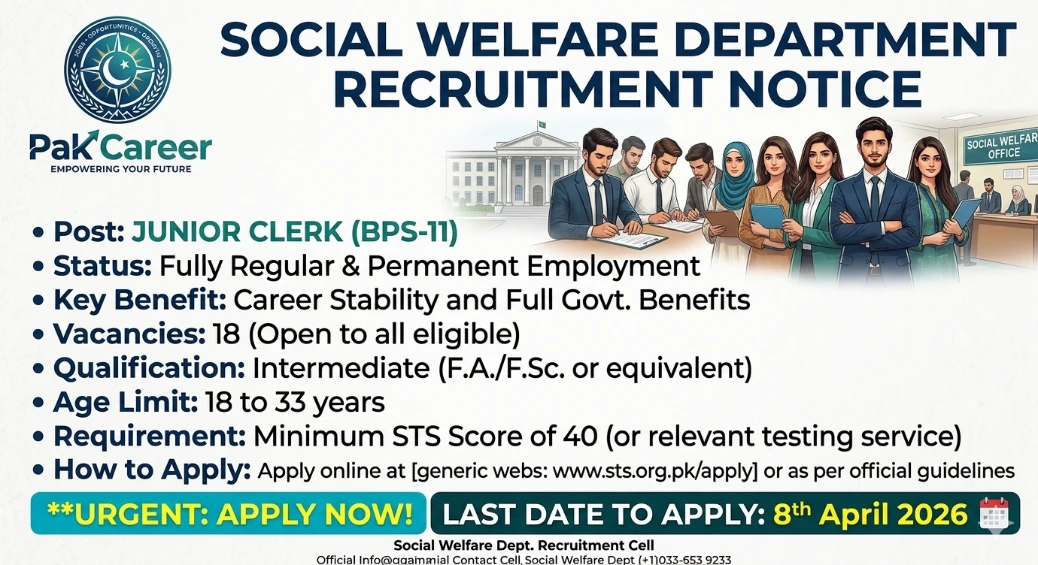 Looking to build a stable and secure career in Pakistan's public sector? The Social Welfare Department is now hiring!